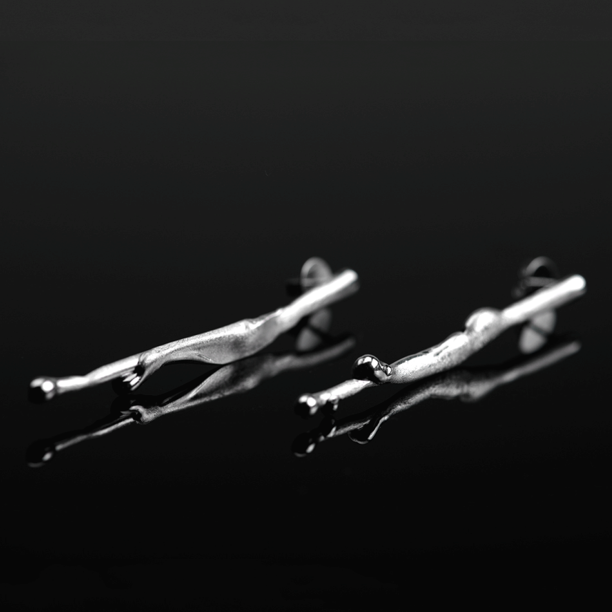 Die Oberfläche der Tropfen wurde poliert, um die Lichtreflexion des flüssigen Wachses aufzugreifen. Der Rest wurde im schönen eismatt bearbeitet. Durch das Zusammenspiel der unterschiedlichen Oberflächen wird das Schmuckstück zum richtigen Blickfang.